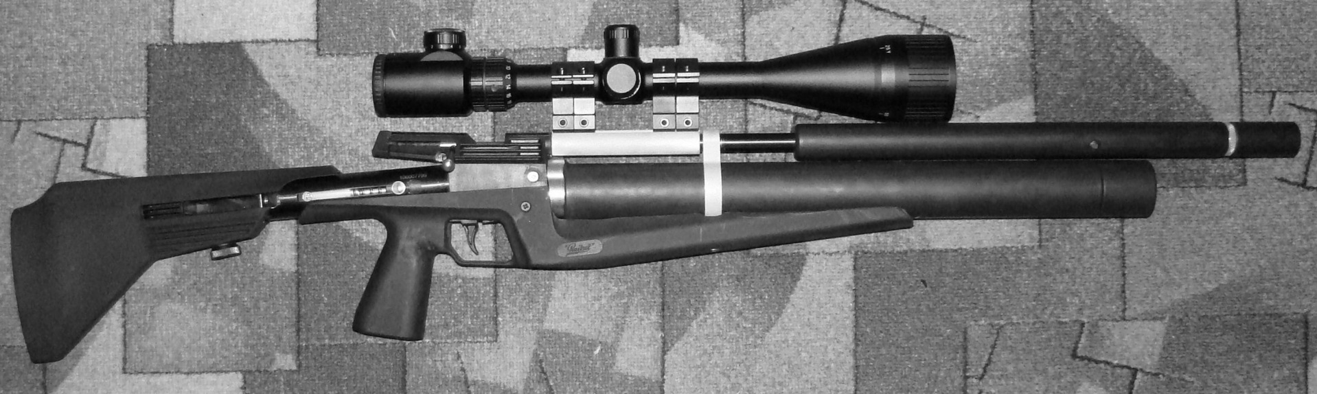 ИЖ-60 PСP + оптика ZOS (мидлот) 6-24х50 -прямоток-увеличенный резикнастрелял - примерно банку КПешек Crosman 2100 + оптика Gamo 6-40 полный АП(поршень регулируемой длинны,с резиновым кольцом в проточке; пружинка накопителя (менее жесткая по сравнению с родной) и пружинка ударника,(более жесткая по сравнению с родной); передняя часть накопителя, отличается от родной большим внутренним обьемом; обратный клапан накопителя: имеет минимальный собственный обьем по сравнению с родным клапаном, а также уменьшает паразитный обьем перепускного отверстия из насоса в накопитель; досылатель; перепуск; полировка УСМ; фиксация ствола)